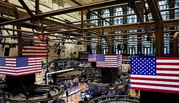 9월 22일 미국 뉴욕시에 있는 뉴욕증권거래소(NYSE)의 스크린에 성조기가 걸려 있다. 사진=로이터/연합뉴스