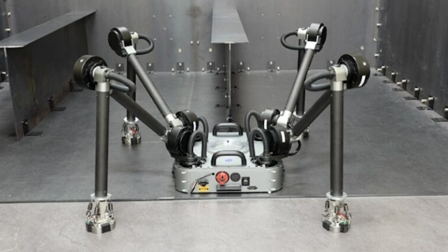 디든 30으로 알려진 사족 보행 로봇은 자기 발과 자율 내비게이션을 사용해 강철 벽과 천장을 가로질러 이동하며 세로 보강재와 같은 조선소 구조를 가로지르는 능력을 입증했다.