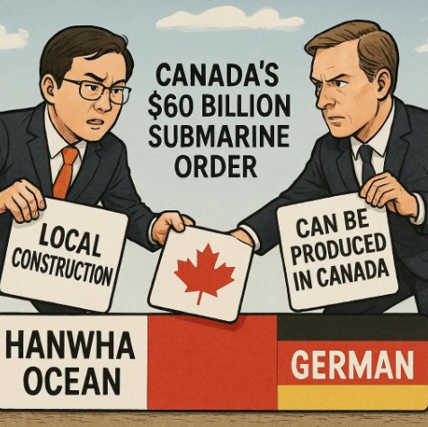 캐나다 정부는 지난 8월 낡은 빅토리아급을 대체할 차세대 잠수함 12척 공급 업체로 독일 티센크루프마린시스템스(TKMS)·노르웨이 컨소시엄과 한화오션을 최종 후보로 선정했다. 양측 모두 2026년까지 계약을 맺으면 2035년 첫 함정을 넘길 수 있다고 제안한 상태다.