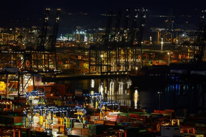 2025년 5월 9일 중국 광둥성 선전의 야간 옌톈 항구 전체적인 모습. 사진=로이터
