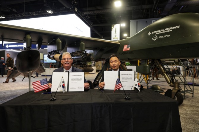 이미지 확대보기한화에어로스페이스는 14일(현지 시각) 미국 워싱턴DC에서 열린 미 육군협회(AUSA) 방산 전시회에서 GA-ASI와 단거리 이착륙(STOL) 무인기 'Gray Eagle-STOL(GE-STOL)'의 공동 개발 계약을 체결했다고 15일 밝혔다.
