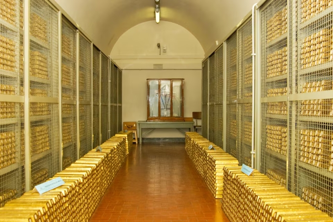 이탈리아 중앙은행은 로마 본점 지하 금고에 약 1100톤을 보관하고 있고, 나머지는 미국·영국·스위스에 분산 보관 중이다.