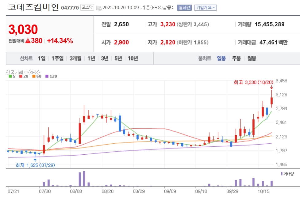 20일 한국거래소에 따르면 이날 오전 10시 9분 기준 코데즈컴바인은 전 거래일 대비 14.34% 오른 3030원에 거래되고 있다. 좋은사람들도 전장 대비 12.38% 상승했다. 좋은사람들은 과거 개성공단 입주사였으며 코데즈컴바인은 최대주주 코튼클럽이 개성공단 입주기업이었다는 점에서 남북경협 관련주로 꼽힌다.