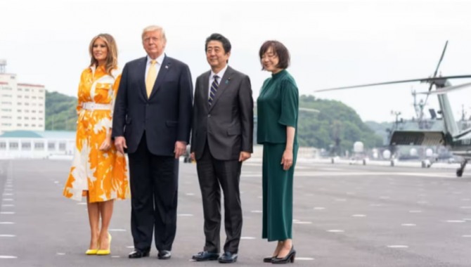 이 일정은 2019년 5월 트럼프의 국빈 방문과 크게 겹치며 아베 시대의 관계를 다시 불러일으킨다. 아베 아키에와의 만남은 2022년 7월 암살된 남편과의 친밀감을 강조한다.