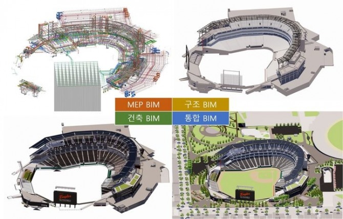 일반부문 건설분야 대상에 선정된 대전 한화생명 볼파크는 기술제안 단계부터 실시설계, 시공·준공까지 전 과정에 BIM을 적용해 원스톱 통합관리 체계를 구축했다.