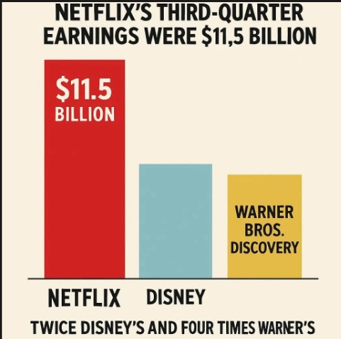 기업 공시 자료를 보면 넷플릭스 분기 스트리밍 매출은 디즈니 약 2배, WBD 4배에 이른다. 넷플릭스는 지난해 4분기부터 올해 3분기까지 꾸준히 성장하며 분기마다 7억~10억 달러(약 1조~1조 4300억 원)씩 매출을 늘렸다.