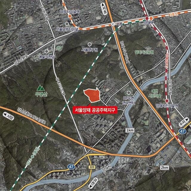 서울양재 공공주택지구는 서울 강남구 서초구에 위치하고 있으며, 우수한 교통·생활 입지 여건을 갖췄다.