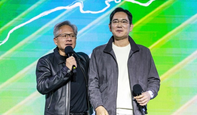 이미지 확대보기엔비디아는 AI팩토리 구축의 핵심인 그래픽처리장치(GPU) 5만 개를 공급해 삼성전자의 ‘반도체 AI 팩토리’ 구축을 돕고, 삼성전자는 엔비디아에 고대역폭메모리(HBM)를 비롯해 소캠(SOCAMM) 등 차세대 메모리 제품과 파운드리(반도체 수탁생산) 서비스를 공급한다.