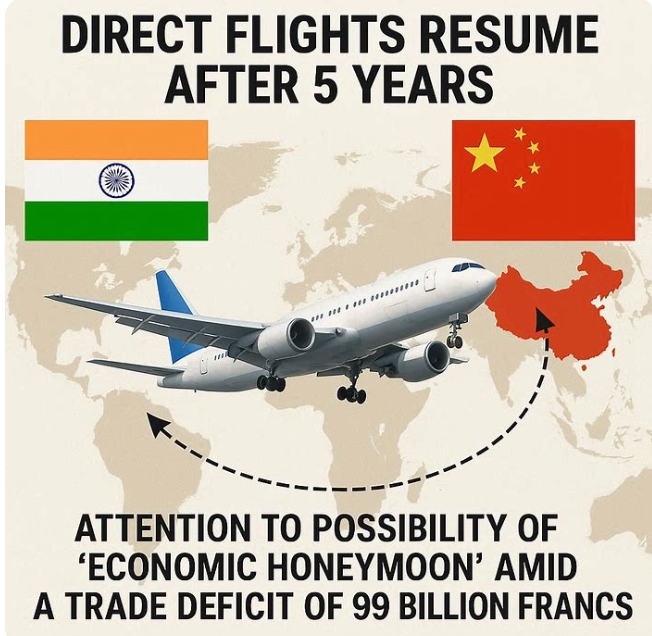 인도와 중국의 직항편 재개는 양국 경제 협력 강화를 보여주는 상징으로 평가된다. 직항편이 잘 돌아가던 2019년에는 약 89만 명이 양국 간 직항편을 이용했으며, 우회 경로를 포함하면 120만 명이 오갔다. 그러나 국경 충돌 뒤 2024년에 우회 경로로 약 57만 명만 이동했다.