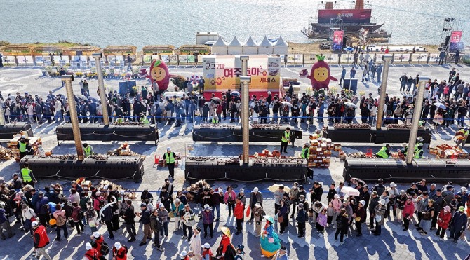 '2025 여주오곡나루축제' 기간 중에 먹거리 부스인 '군고구마 기네스'에 시민들이 붐비고 있다. 사진=여주시이미지 확대보기