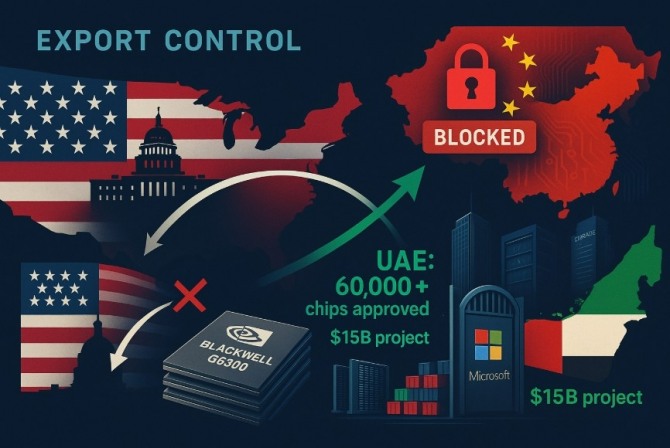 반면 미국은 중국과 달리 UAE에는 AI 칩 수출의 문을 활짝 열었다. 2025년 9월에 라이선스를 발급받아 11월 3일 공식화된 이번 조치로, 마이크로소프트(MS)가 엔비디아의 최신 'GB300 그레이스 블랙웰' 칩을 포함한 6만 개 이상의 첨단 AI 칩을 UAE에 수출하는 것이 최종 승인됐다.