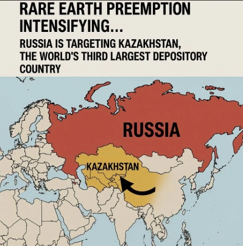 이 지역이 러시아의 새 표적이 된 배경에는 희토류 같은 주요 광물자원이 자리 잡고 있다. 카자흐스탄은 올해 4월 중부 카라간다주에서 2000만 톤 이상 희토류 매장지를 발견했다고 밝혔으며, 이는 중국·브라질에 이어 세계 3위 규모다. 미국 지질조사국(USGS) 자료를 보면 미국은 희토류 수입의 70%를 중국에서 들여오고 있어 카자흐스탄의 전략적 가치가 더욱 부각되고 있다.