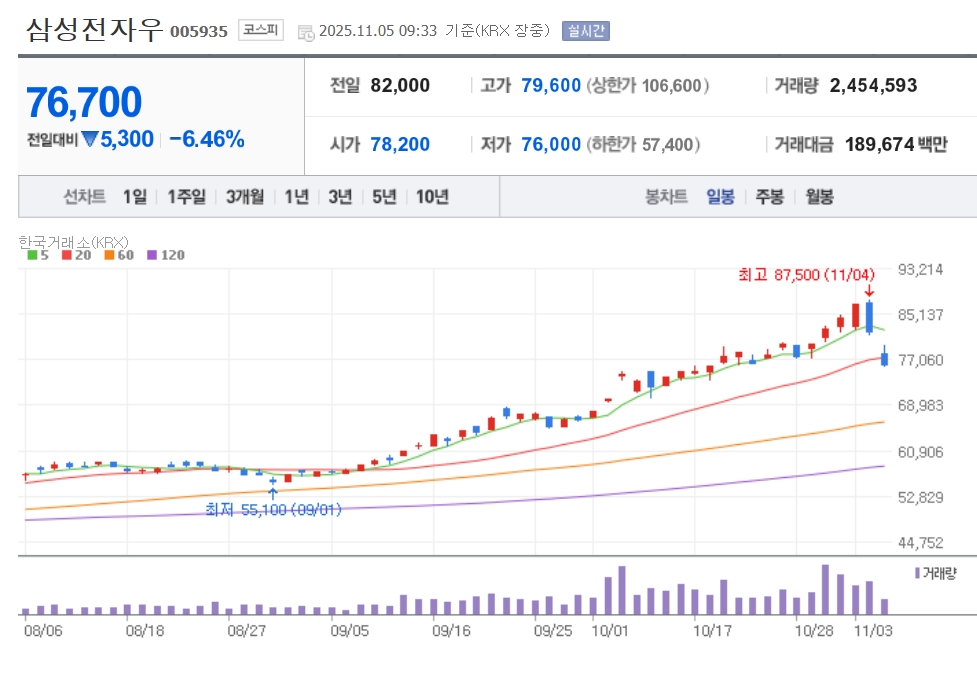 삼성전자 주가 추이. 자료=네이버페이 증권