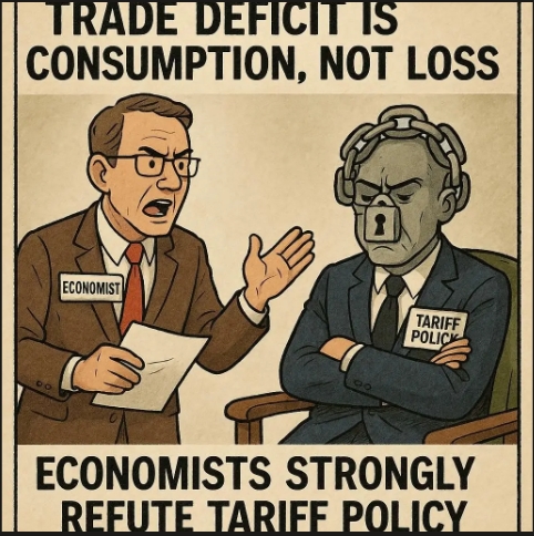경제학자들이 제시하는 첫 번째 반박의 논거는 무역적자의 본질에 대한 이해 차이다. 트럼프 대통령은 스위스 대통령 카린 켈러-수터와의 만남에서 "미국의 무역적자가 410억 달러(약 59조 원)"라며 "우리는 손실을 본다"고 표현했다. 그러나 경제학자들은 이를 근본적으로 잘못된 해석이라고 지적한다.