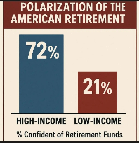 은퇴 자금 확보에 대한 자신감도 소득 수준에 따라 큰 차이를 보였다. 고소득 고령층의 72%가 은퇴 후 생활비가 충분하다고 확신했지만, 중간소득층은 46%, 저소득층은 21%만이 그렇게 답했다.