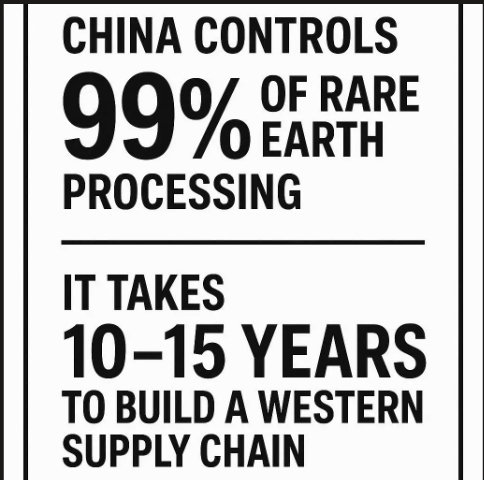 보도에 따르면 중국은 전 세계 중희토류 생산량의 약 90%와 가공 능력의 99%를 장악하고 있다. 중희토류는 F-35 전투기와 전기차 모터의 고성능 자석에 필수 원소인 디스프로슘과 테르븀 등을 포함한다.