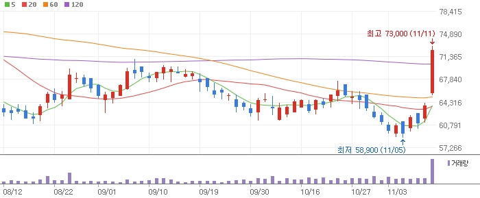 현재가 기준 시가총액은 2조7734억원으로 하루 새 약 3333억원 증가했다.