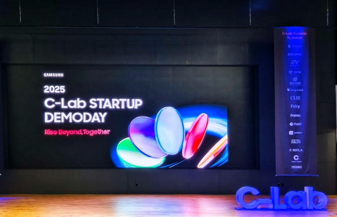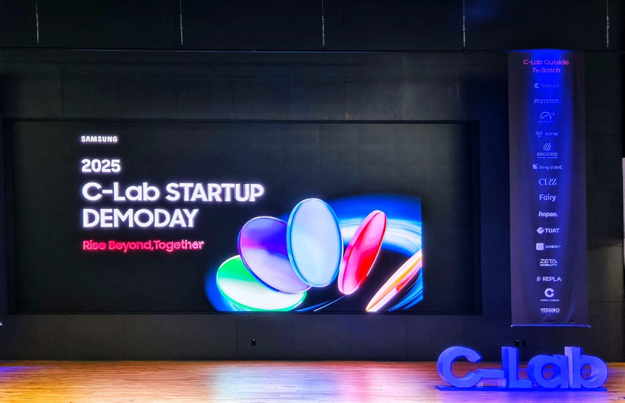 이미지 확대보기삼성전자는 20일 서울 서초구 삼성전자 서울R&D캠퍼스에서 '2025 C랩 스타트업 데모데이'를 개최했다. 'C랩과 함께, 한계를 넘어'를 주제로 진행된 이번 행사에는 C랩 아웃사이드 7기 30개 스타트업이 참여해 성과 발표와 패널 토의를 진행했다. 행사장에는 전시 부스도 별도로 마련됐고 뤼튼테크놀로지스 등 5개 졸업사도 참석해 성장 스토리를 공유했다.