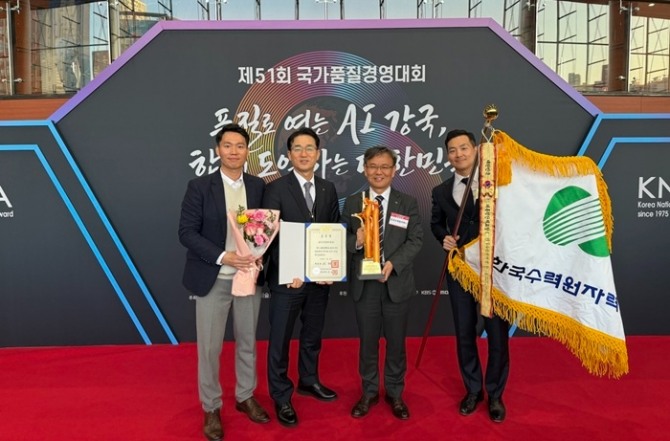 이미지 확대보기한국수력원자력(이하 한수원)이 지난 19일 서울 코엑스에서 열린 ‘제51회 국가품질경영대회’에서 국가품질혁신상(디지털전환 부문) 대통령표창을 수상했다고 20일 밝혔다.