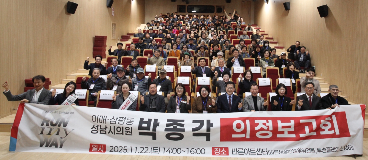 한편 이날 보고회는 안철수 국회의원, 장영하 국민의힘 수정구당협위원장, 박강수 전 배재대 총장, 안계일·방성환·이서영 경기도의원, 안극수·박은미·박명순 성남시의원을 비롯해 지역 각계 인사 300여 명이 참석했다.
