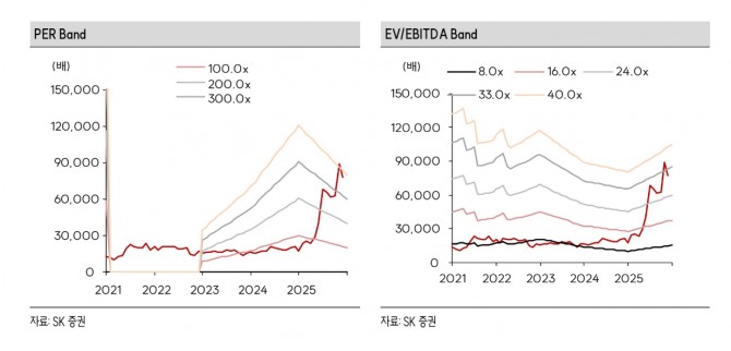 이미지 확대보기나민식 SK증권 연구원은 “2027년 EBITDA 2조 3420억원, Target EV/EBITDA 27배를 적용해 목표가 9만 2000원을 제시한다”며 “북미 원자력 기업(LEE, CCJ, BWXT)의 평균 EV/EBITDA 27.5배를 고려한다면 무리한 밸류에이션은 아니라고 생각한다”고 의견을 냈다.
