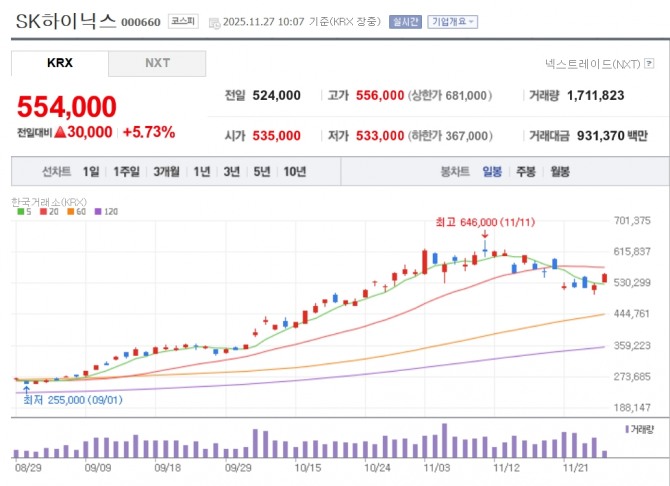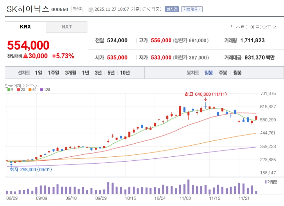 SK하이닉스 주가 추이. 자료=네이버페이 증권