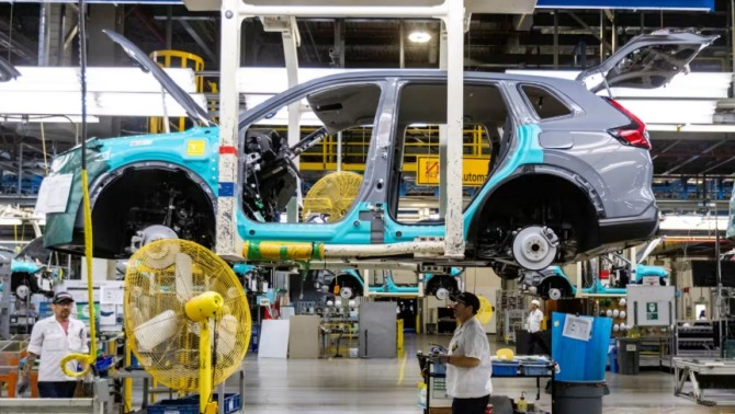캐나다 자동차 공장 노동자들. NHK 스프링은 인도 공장을 업그레이드해 전기차의 핵심 부품인 모터 코어를 스탬핑할 수 있게 할 예정이다. 사진=로이터