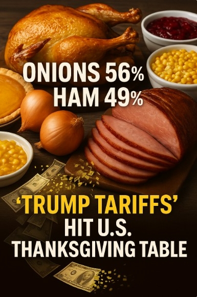 [초점] 양파 56%·햄 49% 폭등…'트럼프 관세'가 덮친 美 추수감사절 밥상