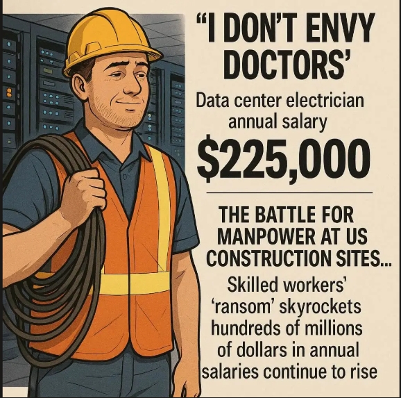 인공지능(AI) 투자 붐으로 데이터센터 건설이 급증하면서 숙련된 건설 근로자 수요가 폭발해 연봉이 수억 원대로 치솟는 골드러시가 확산