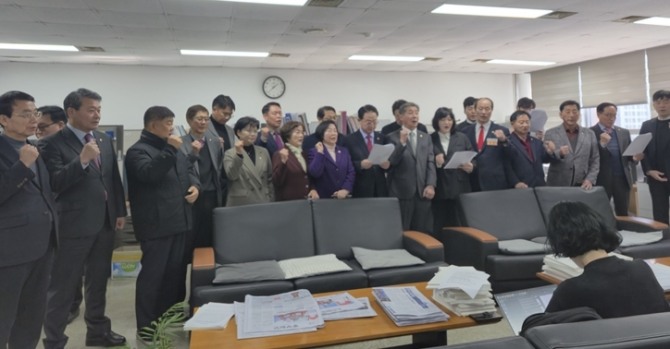 이 날 인천시의회 국민의힘 시의원들은 “검찰의 기소는 법적 형평성을 상실한 정치적 행위”라고 밝혔다. 이어 수사기관이 제시한 증거는 조직적 개입 여부의 빈약을 지적했다.