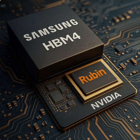 삼성전자가 6세대 고대역폭메모리(HBM4)의 생산 준비 승인(PRA)을 마치고 엔비디아의 차세대 AI 플랫폼 '루빈' 공급망 진입을 눈앞에 뒀다. 삼성은 10나노급 6세대(1c) D램에 4나노 파운드리 공정을 결합해 기존 제품 대비 속도를 60% 이상 끌어올리는 승부수를 띄웠다. 사진=오픈AI의 챗GPT-5.1이 생성한 이미지