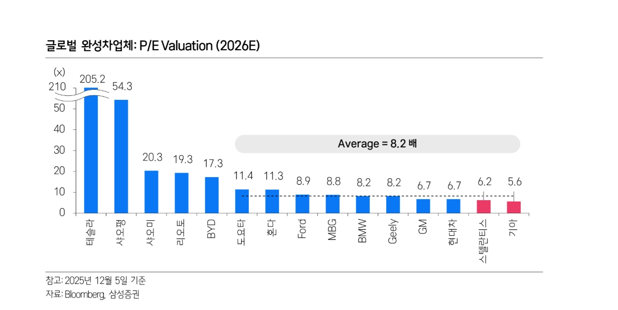 목표주가 상향에 대해서는 “2026년 주당순이익(EPS)에 목표 주가수익비율(Target P/E)를 8.2배 적용했다”며 “8.2배는 글로벌 레거시 자동차업체의 평균이며 기존 7배 대비 17% 상향한 것”이라고 설명했다.