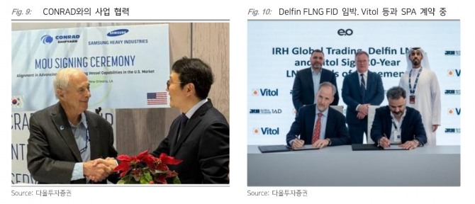 콘래드와는 미국 LNG벙커링선(LNGBV) 시장에 공동 진출을 선포했다. 그동안 피어그룹이 미국 투자 및 특수선을 바탕으로 한 MASGA 동력 때문에 적정 PER 20배로 동사의 15배보다 높게 부여했다.
