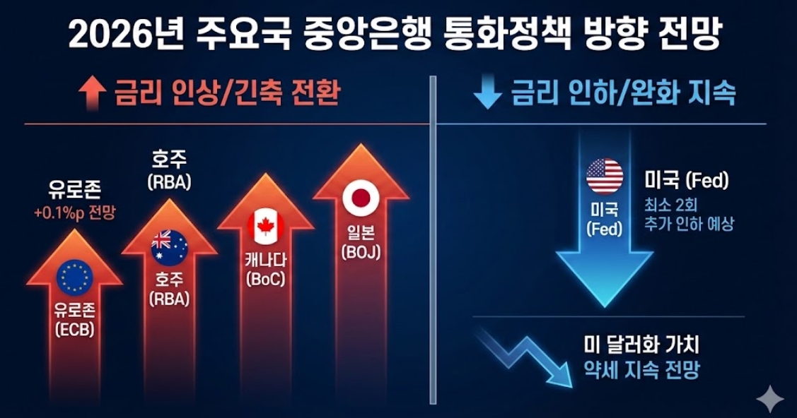 글로벌 중앙은행들의 엇갈린 통화정책은 한국 금융시장에 복합적 영향을 미칠 전망이다.