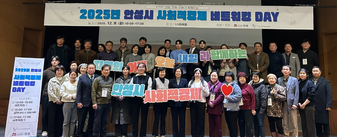 이미지 확대보기안성시 사회적경제지원센터가 주관한 이번 행사는 사회적기업, 협동조합, 자활기업 등 사회적경제 조직 임직원 50여 명이 참석해 2025년을 마무리하며 상생·연대 방안을 모색하는 교류의 시간을 가졌다.
