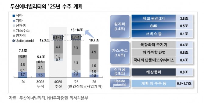두산에너빌리티가 12월 수주에 성공한 프로젝트는 대형원전(두코바니, 원자로증기공급계통(NSSS) 4조9000억원, 터빈 7000억원), SMR(엑스 에너지, 16기), 가스터빈(북미 빅테크향, 대형 3대) 등이다.