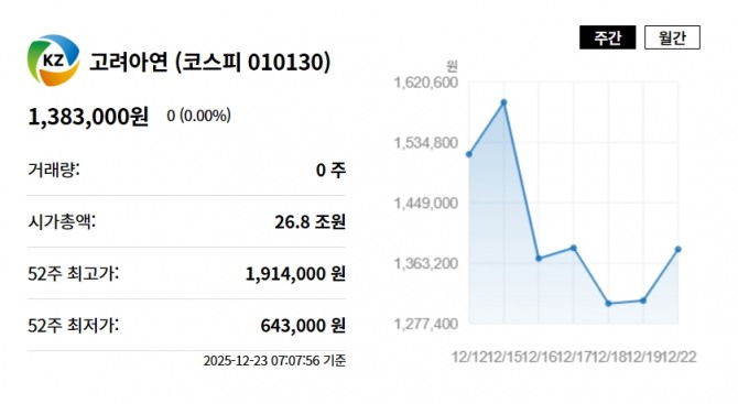 최근 아연 제련 수수료(TC) 하락으로 글로벌 제련업계가 수익성 악화에 직면했을 때도 고려아연은 견고했다. 아연뿐만 아니라 안티몬·비스무트·인듐·갈륨 등 방산과 첨단 산업에 필수적인 희소금속으로 포트폴리오를 확장해 지정학적 리스크를 상쇄했기 때문이다.