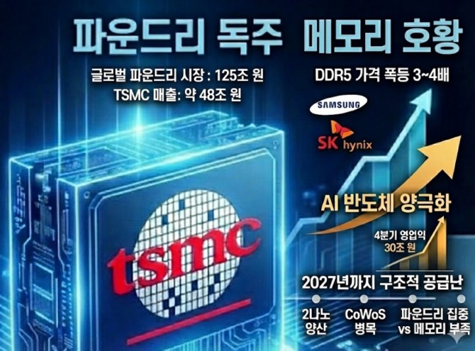 2나노 양산·CoWoS 병목 현실화…"파운드리 집중 vs 메모리 부족" 구조적 공급난 2027년까지