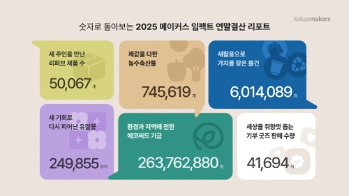 김정민 카카오메이커스 총괄리더는 "올해도 이용자들의 따뜻한 관심 덕분에 우리 사회 곳곳에 유의미한 발자취를 남길 수 있었다"며 "내년에도 이용자들이 체감할 수 있는 임팩트 경험을 확장하기 위해 파트너십을 강화하고, 사회적 가치를 창출할 수 있는 신규 영역을 적극적으로 개척하겠다"고 말했다.