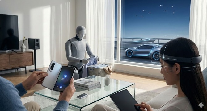 이미지 확대보기월스트리트저널(WSJ)은 지난 26일(현지 시각) ‘2026년 당신의 삶을 바꿀 기술’이라는 특집 기사를 통해 다가올 새해 기술 산업의 핵심 화두로 △애플의 폴더블폰 진입 △가사 로봇의 가정 침투 △뇌-컴퓨터 인터페이스(BCI) 상용화 △전기 슈퍼카의 등장을 꼽았다. 지난 몇 년이 소프트웨어 중심의 생성형 AI 열풍이었다면 2026년은 이 지능이 스마트폰, 로봇, 자동차, 인간의 신체와 직접 연결되는 ‘물리적 확장 AI(Physical AI)’의 시기가 된다는 분석이다.