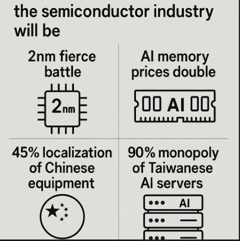 이미지 확대보기디지타임스가 30일(현지시각) 보도한 연말 결산 기사에 따르면, 올해 반도체 시장은 첨단 2나노(㎚) 공정 경쟁 본격화, AI 수요로 인한 메모리 시장의 구조적 전환, 중국의 반도체 자립 가속화, 대만 서버 제조업체의 급부상 등 네 가지 핵심축을 중심으로 전개됐다. 이러한 변화는 2026년에 기술 리더십, 공급망 안보, 시장 접근성이 불가분의 관계로 얽히는 새로운 반도체 질서의 도래를 예고한다.