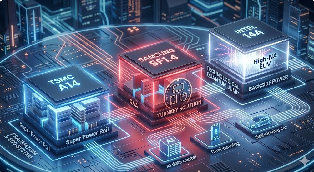 2026년부터 본격화하는 1.4나노 경쟁은 단순한 선폭 미세화를 넘어 트랜지스터 구조(GAA), 전력 공급(BSPDN), 노광 장비(High-NA EUV)라는 '3대 기술 난제'를 푸는 복합 방정식이다.