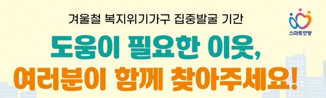 시는 안양시무한돌봄센터, 안양시복지콜센터, 각 동 행정복지센터는 물론 명예사회복지공무원, 삼천리 등 민간 협력기관 등과 함께 위기가구를 발굴할 계획이다.