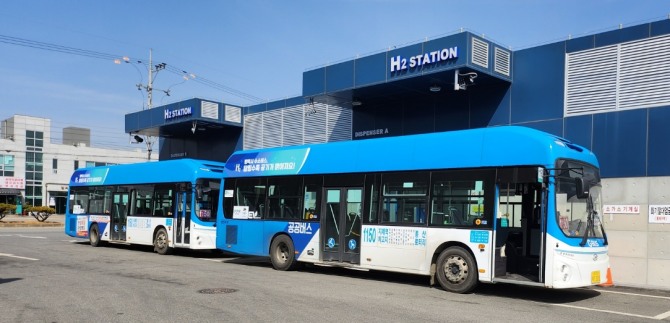 수소충전소에서 충전중인 경기도 버스. 사진=경기도