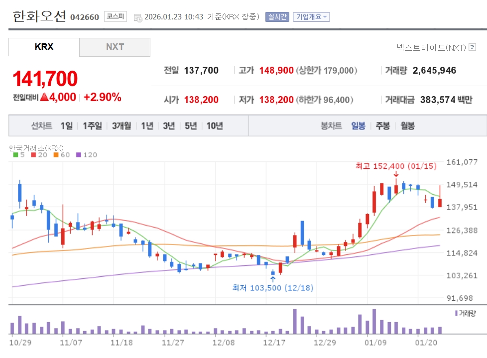 한화오션 주가 추이. 자료=네이버페이 증권