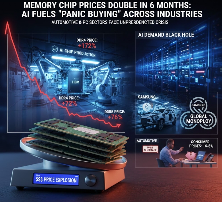 니혼게이자이신문(닛케이)과 안드로4올(Andro4all) 등 외신은 지난 28일(현지시각)과 30일 보도를 통해, AI용 고대역폭메모리(HBM)로의 생산 설비 쏠림 현상이 자동차와 PC 등 기존 산업용 메모리의 극심한 수급 난을 초래했다고 밝혔다. 전 세계 메모리 제조사들이 수익성이 높은 AI 수요에 우선 대응하면서, 올해 초부터 범용 메모리 공급이 급감해 전방 산업 전반의 물가 상승을 압박하고 있는 상황이다.