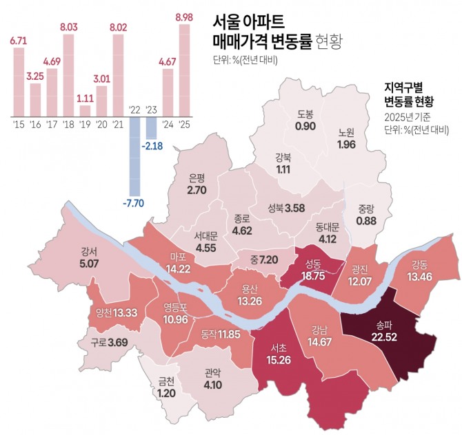 이미지 확대보기집값이 폭등했던 2018년의 8.03%을 앞서는 수치다. 2006년 노무현 정부 시절 주택가격 상승률(23%)에 이어 역대 두 번째로 높은 상승률이다.