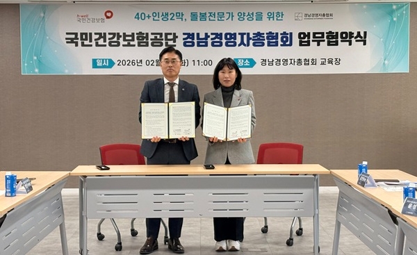 국민건강보험공단 부산울산경남지역본부(본부장 조준희, 이하 건보공단 부울경본부)는 지난 3일 경남경영자총협회 중장년내일센터․행복내일센터(센터장 방영직)와 경남지역의 심각한 돌봄인력 부족과 고령화 문제를 해소하기 위해 ‘중장년 요양보호사 양성’을 위한 업무협약(MOU)를 체결했다.