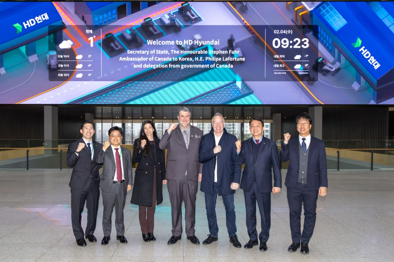 이미지 확대보기HD현대중공업은 4일 스티븐 퓨어 캐나다 국방조달장관과 필립 라포르튠 주한 캐나다대사 일행이 경기도 판교에 위치한 HD현대 글로벌R&D센터(GRC)를 방문했다고 밝혔다. 이번 방문은 캐나다 잠수함 도입 사업 ‘CPSP’ 추진의 일환으로 국내 방산업체의 건조 역량과 기술력을 직접 확인하고자 이뤄졌다.