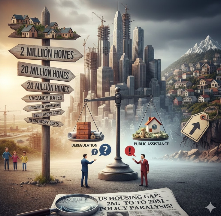 미국 주택 부족 문제를 해결하기 위해 필요한 신규 주택 규모가 분석 기관에 따라 200만 가구에서 2000만 가구까지 극심한 차이를 보이며 정책 입안자들에게 혼란을 주고 있는 것으로 나타났다. 이미지=제미나이3